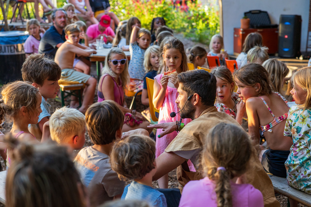 Het publiek hoeft niet stil te zitten en te luisteren, maar wordt voortdurend uitgenodigd om mee te doen! Zo wordt het verhaal een echte beleving.